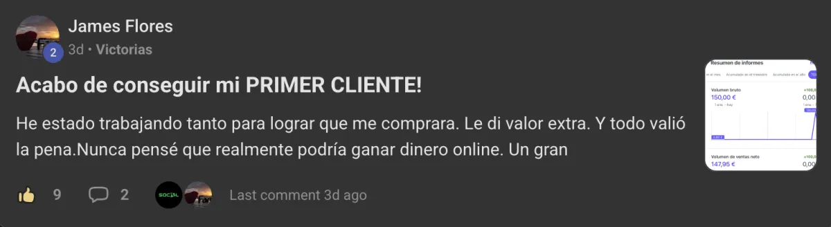 En cuanto al tiempo real, es imposible para mí decirlo, ya que varía para cada persona. Pero con este modelo de negocio, que creo que es el único en el mundo donde puedes recuperar tu inversión después de tu primer cliente. Después de cerrar tu primer cliente, serás rentable y solo tendrás un gasto adicional cuando hayas cerrado más clientes.